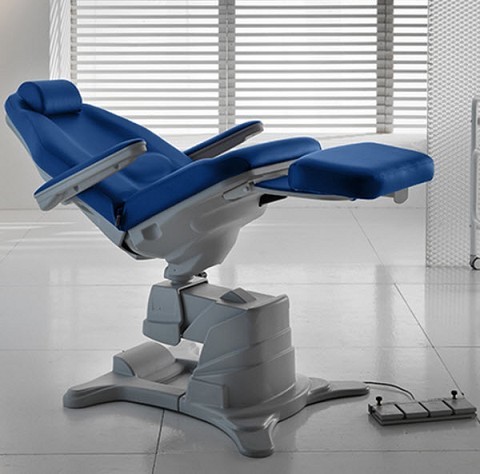 Full power tilt examination chair with dual controls for base and top tilt function, either by footswitch or membrane switches on both sides of chair back.programmable.